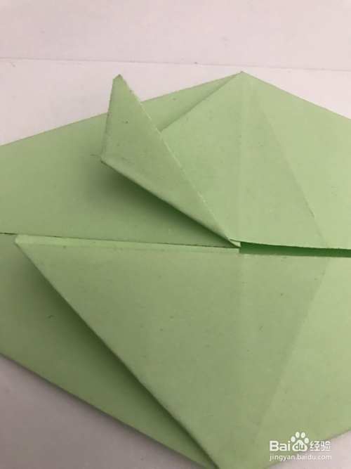 第六步 向上翻折完之后 再把上面的尖角向左从根部折一下 再向右回折 然后把尖角向左回折