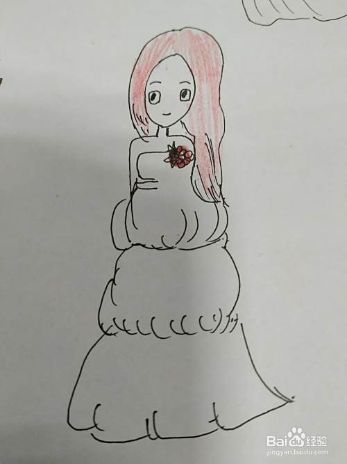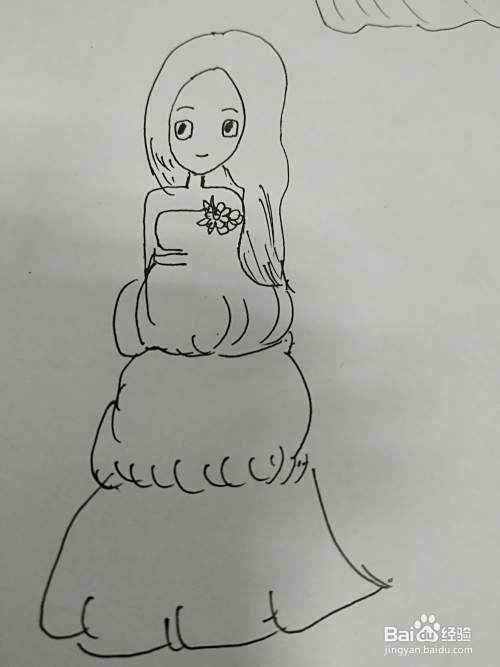 然后我们继续为公主画上婚纱,好几层的婚纱,穿起来更加好看。如下图