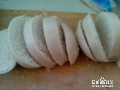 将馒头用刀切成馒头片,不要切太薄了,大约是一个馒头切四到五块馒头片。