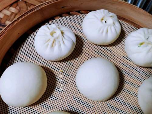 9醒好的面团再次揉面排气后分成小份,擀成面皮,填入馅料,包制成包子,码放笼屉里,每个包子之间留2指的间距,避免包子长大后粘在一起。盖上蒸笼盖子,再次醒发15--20分钟,用手拿起包子生胚感觉轻飘飘的,这时就可以开火蒸制了,大火烧开,等笼屉上汽后转中火蒸15分钟,关火后过2分钟再开盖,白白胖胖松软鲜香的素馅包子就出锅了。包子的包法之前有详细地写过,这里不再重复了