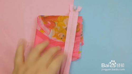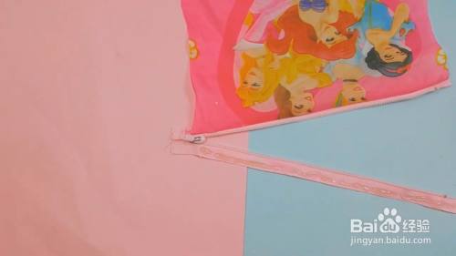 然后我们把拉链用针线给固定在布料上面。