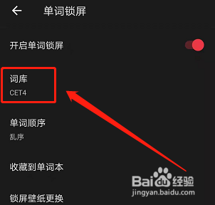 3.然后,点击“单词锁屏”后,点击“词库”。