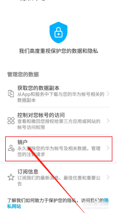 打开设置点击进入华为帐号,然后在点击进入隐私中心,接着选择销户后,验证身份后即可成功注销华为帐号。