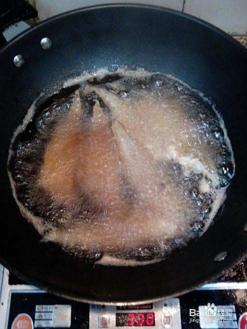 锅内放入适量油烧热,把舌头鱼在鸡蛋液中裹一下,下锅炸至金黄(小火炸)。