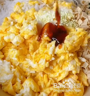 菠菜洗净,焯水捞出,挤干水分,切碎,放粉条、鸡蛋碎、豆皮岁,盐、鸡精、蚝油、十三香、料油,面粉、拌匀