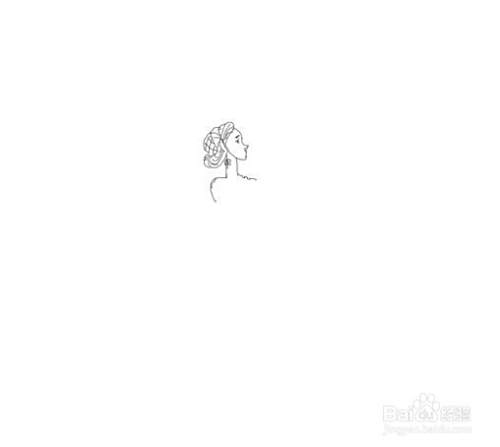 在头部下面画出美女的脖子,然后再画出美女的肩膀,如图所示: