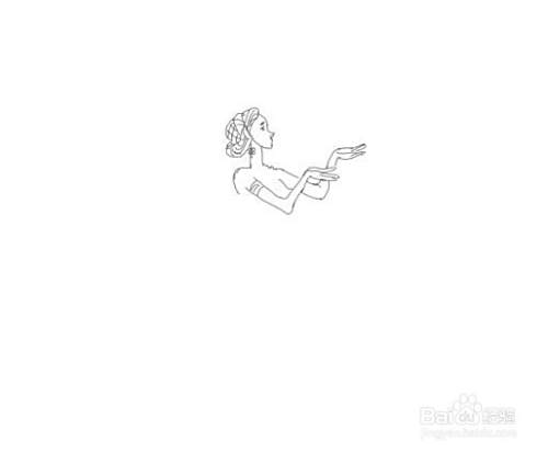 再在胳膊的下面画出美女的身体,并在身体上画出衣服,如图所示: