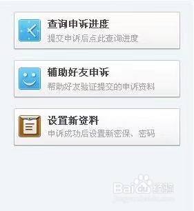 在页面的右边是“查询申诉进度”“辅助好友申诉”“设置新资料”的按钮,如果需要可以进行点击。输入账号和验证码进入下一步。