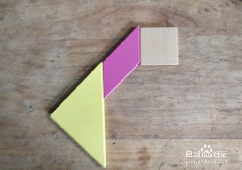 摆上一个小三角形,放在正方形的右侧挨着,下端一齐,如图。