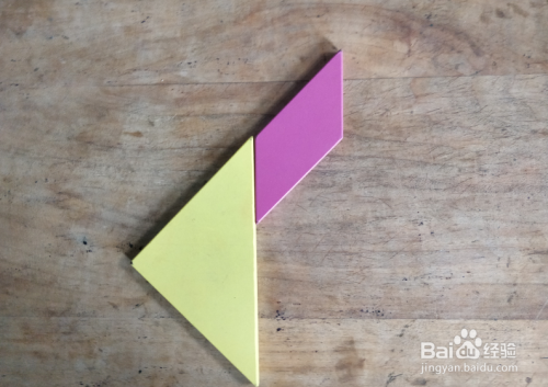 摆上余下的大三角形,放在大三角形的左下挨着,直角向上,如图。