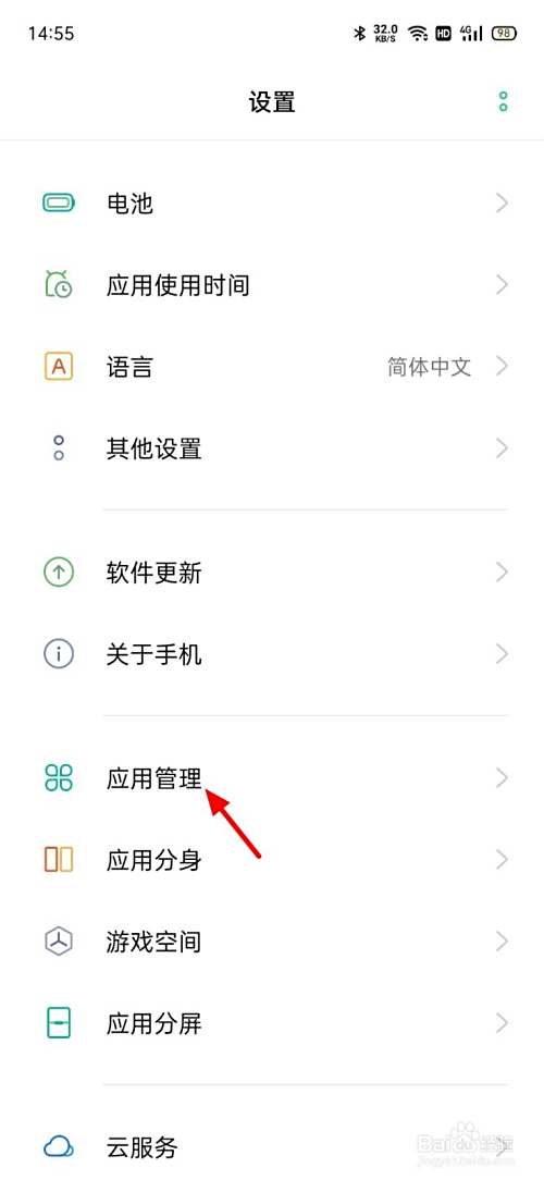 在设置页面,点击应用管理。