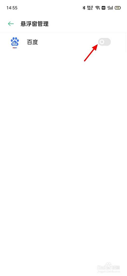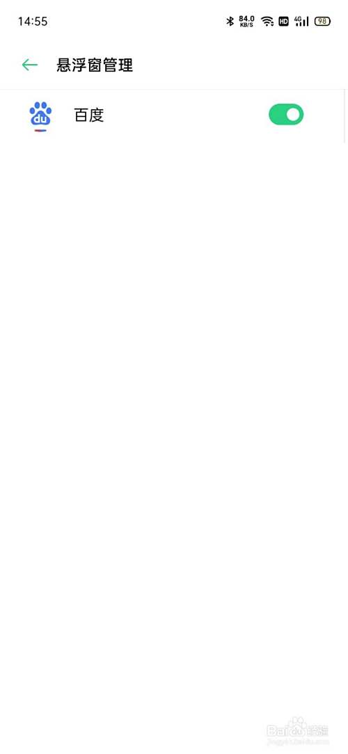 在悬浮窗管理页面,打开百度。