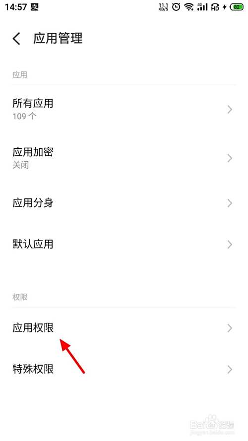 在应用管理页面,点击应用权限。