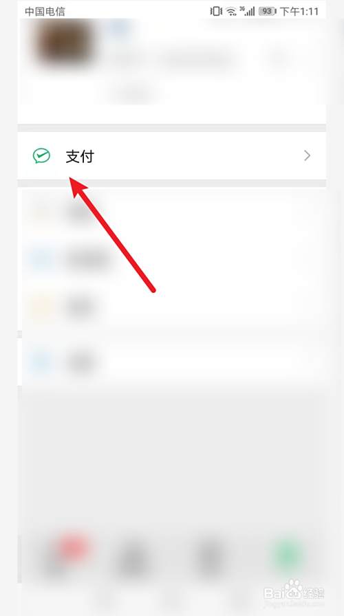 打开手机上的微信,在微信界面点击我的——支付;