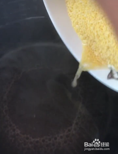 锅中添水,放入浸泡好的小米,加入红枣、枸杞一同放入开始煮。