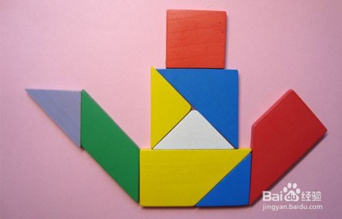 最后,取红色的梯形板,摆放在蓝色三角形板的右边,拼接位置,如下图所示。这样好看的洒水壶图形就拼好了。可以让孩子仔细看一遍后,自己动手拼图,并不断回忆拼图的顺序,这可以锻炼孩子的记忆能力。培养孩子的过目不忘的能力,对孩子以后的学习有帮助。