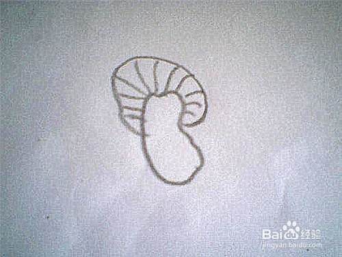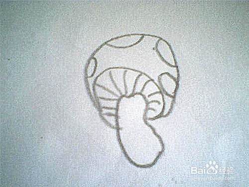 围绕蘑菇杆画出来蘑菇顶部里侧的线条,