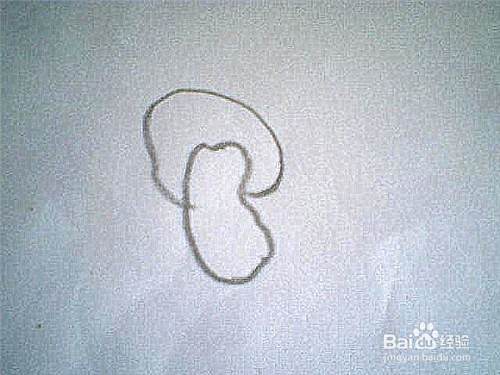 首先要画出来带有弯曲的蘑菇杆的模样,