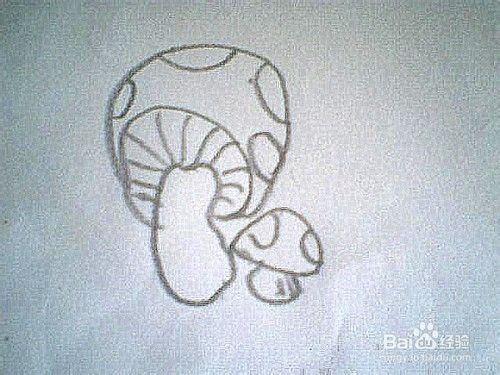 画出来小蘑菇表皮的斑纹和褶皱,这幅图画就画完了。