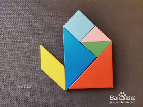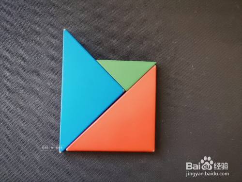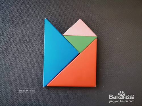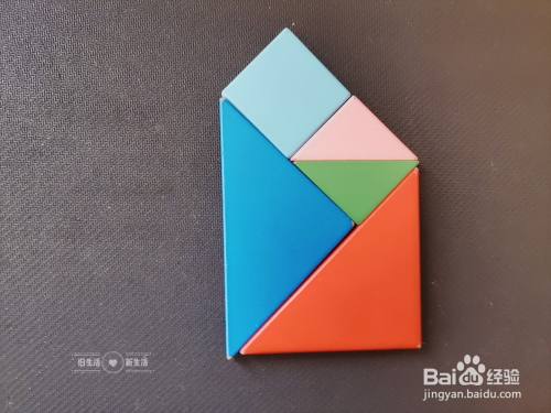 拿出一个天蓝色正方形放在粉色小三角形的上面,如下图所示。