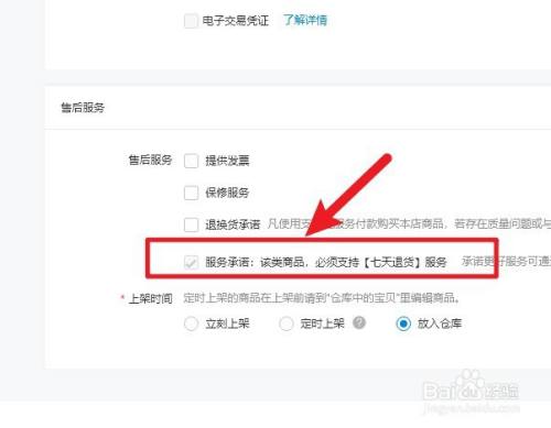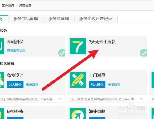 可以看到有七天无理由服务,也可以在该页面加入其他服务。