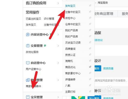 如果要关闭七天无理由,点击宝贝管理--发布宝贝。