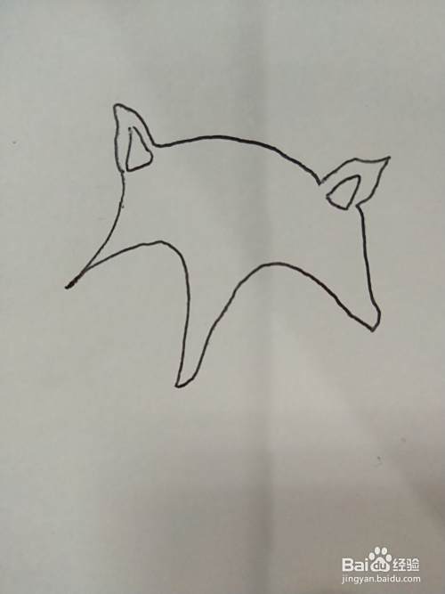 要画狐狸,势必要画出尖尖的鼻子,所以先在纸上画一个大雁的形状。
