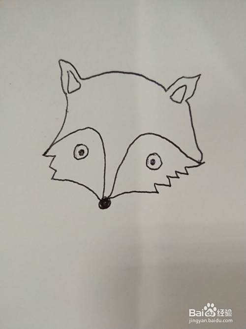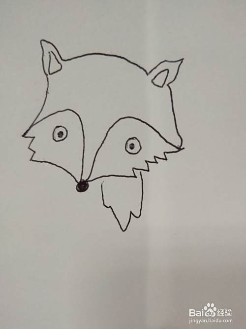 关键步骤,由于狐狸脸颊也是有毛发的,所以弯弯曲曲的画一些线,连接鼻子。