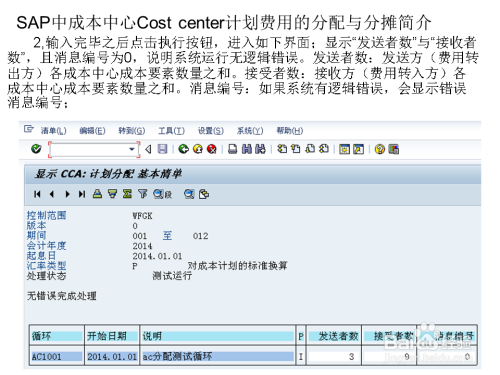 在SAP中,在待转出的成本中心费用正确完整记账并且分摊分配规则正确完整建立之后,则可以进行此项操作。当分摊分配完成后,发送方成本中心只留有计划留存的余额(如果发送方成本中心的费用需要全部转出,则该成本中心完成分摊分配后余额为0)。接收方成本中心总的接受额=发出方成本中心的发出额。