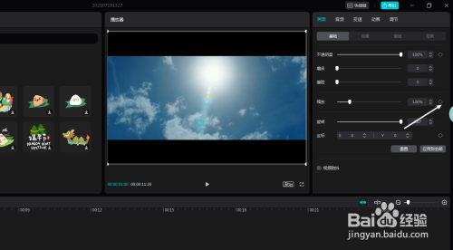 点击右侧画面基础,右边点击缩放上的棱形,点击这个会添加画面缩放关键帧。