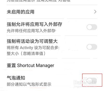进入开发人员选项界面,将气泡通知开关打开即可。
