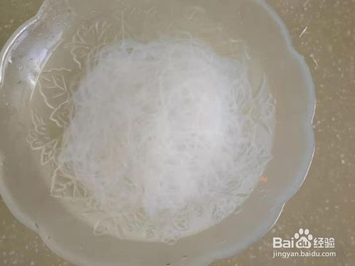 锅中加水烧开,把粉丝放上煮绵软,捞出,在凉水中冲一下过凉,控干水备用,肠胃不好的过凉用的水最好是凉开水。