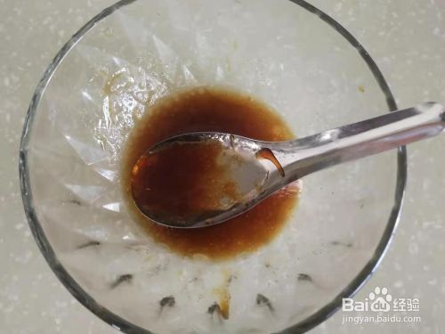 在小碗中,加1勺香醋,半勺耗油,1/3勺芝麻油和白糖,少许盐调成汁。