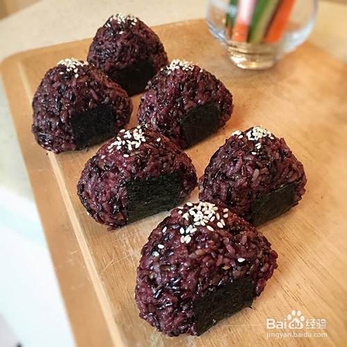 我自己也特别喜欢紫米饭团,特别是中间夹着料的那种。今天我要说的就是这种紫米饭团。