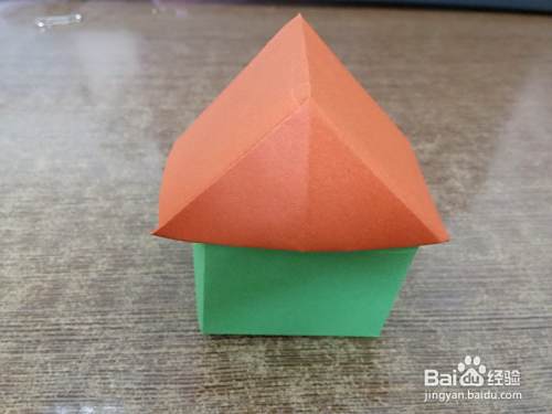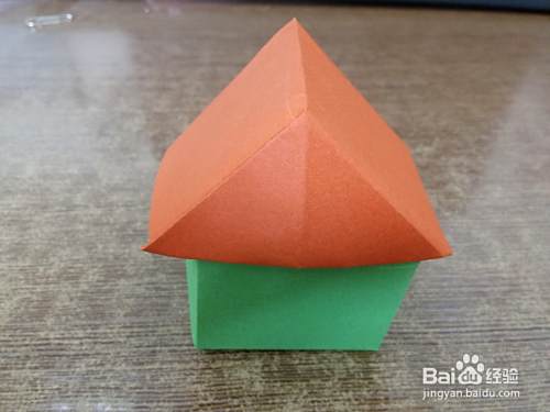 然后将图形展开如图,将两边耳朵折叠到内里面,一个屋顶就做好了