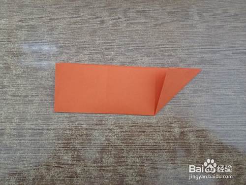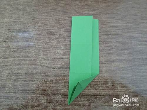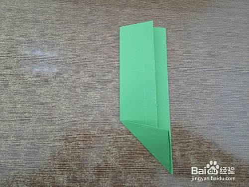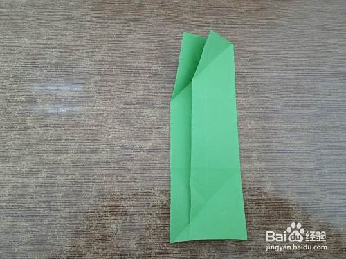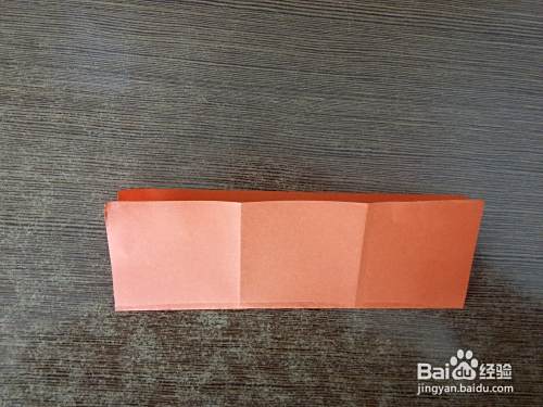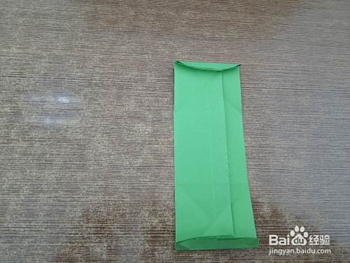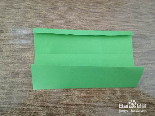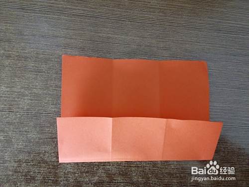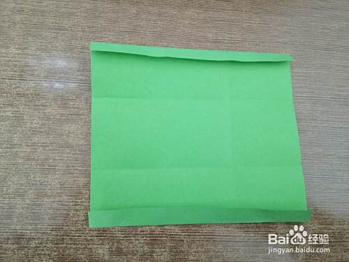 然后将下边沿着第一道痕迹往上折叠,上面也沿着上面的第一道痕迹进行折叠