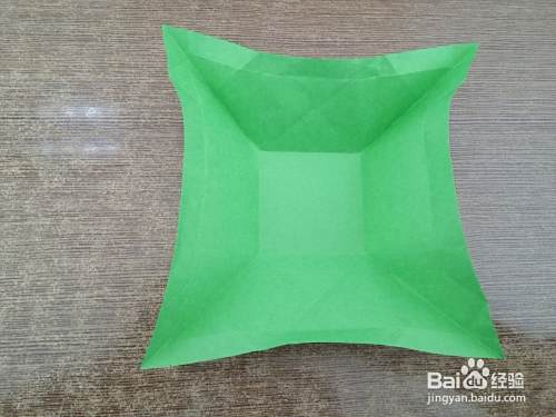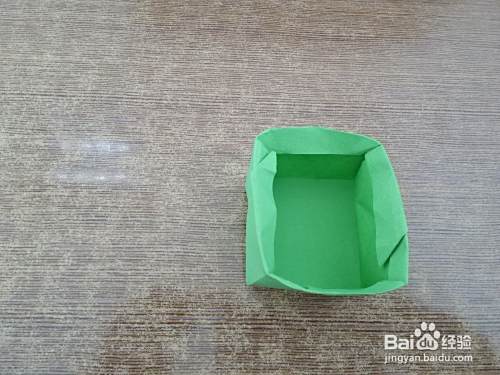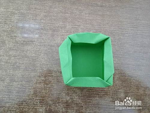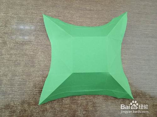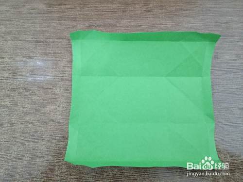 然后慢慢往里面折叠,最后将四条边都沿着痕迹折叠到里面