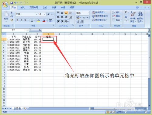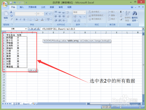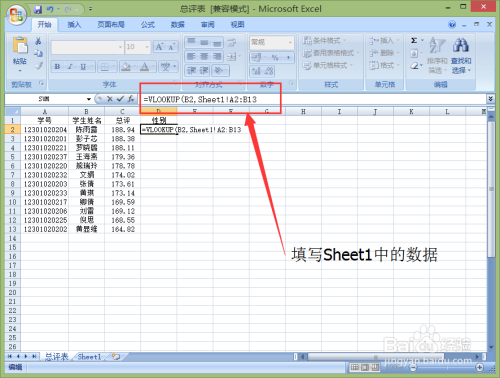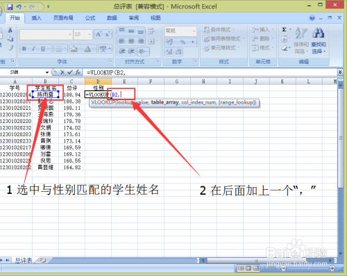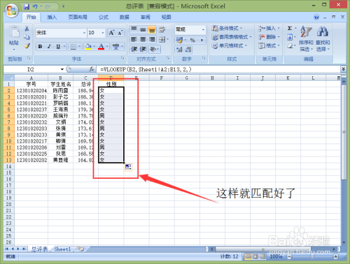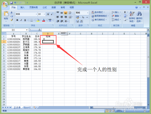 点击与性别相匹配的学生姓名,然后在数据后加入一个“,”。