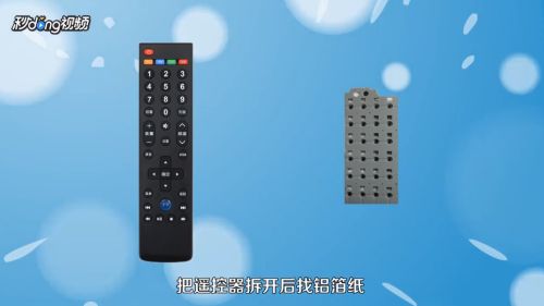 3检查按键键盘:遥控器用时间久了,脏东西会附着到按键接触点,导致遥控器失灵,把遥控器拆开后找铝箔纸擦拭黑色的导电橡胶,把表面上的灰尘等脏东西擦掉。