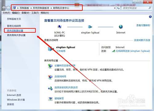 进入页面之后点击左侧的“更改适配器设置”进入;