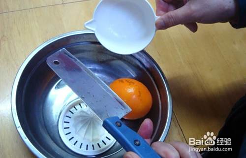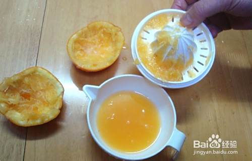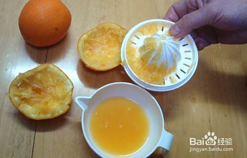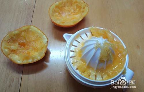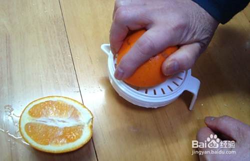 接着,把橙子旋转几次后,橙汁就榨到小碗里了,如下图所示。