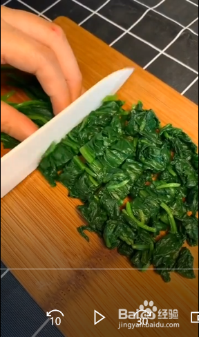 菠菜洗净放入锅中焯烫1分钟捞出切成末;