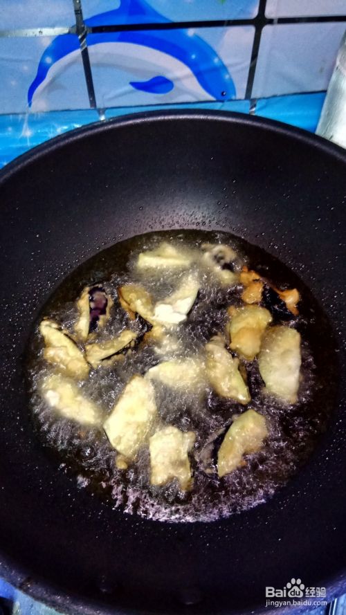 锅中放入适量油,油热后,将茄子放入锅中,小火慢炸。