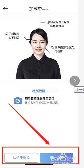 跳转至新界面,从相册选择已经拍好的照片(或现拍一张);