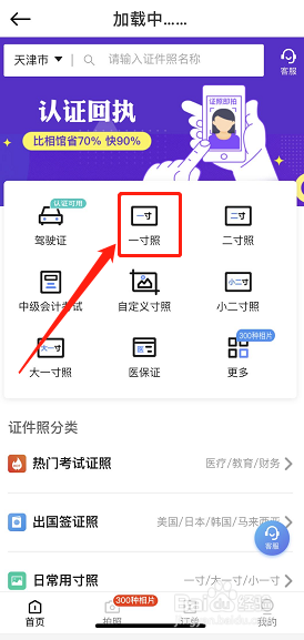 点击后跳转至新界面,点击选择“一寸照”(也可自行选择其他规格);