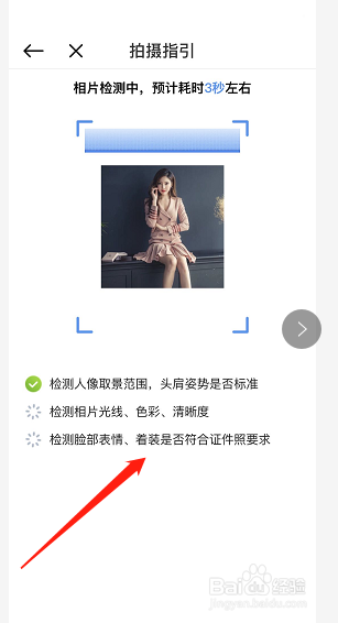 5.选择好后,跳至新界面“相片检测中”,稍等几秒钟,可得证件照电子版。