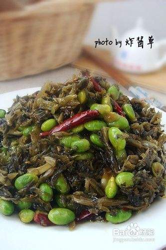 毛豆是新鲜的所以比较容易熟,加少许水是让了雪菜中的盐份溶入毛豆中。
