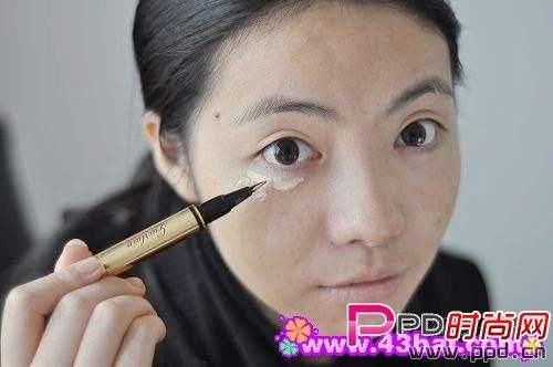 2然后遮瑕,黑眼圈还是有点严重,而且眼睛提亮以后气色会好很多。这个是和金钻修颜粉底液一起买回来的,新款的金钻修颜明彩笔,和粉底液一样,很水,完全不担心卡粉和干纹。