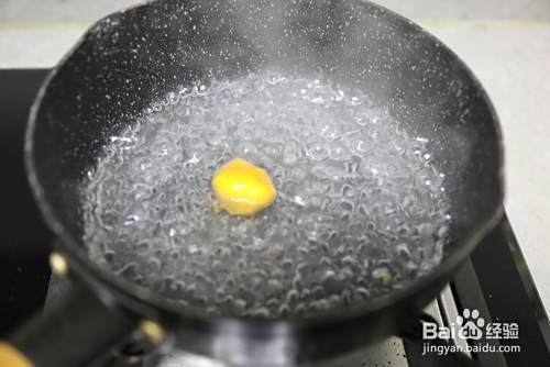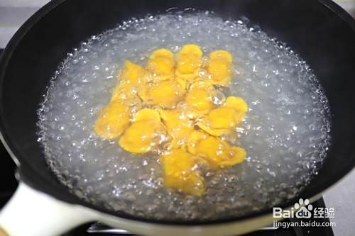 取一块鸡蛋黄大小的南瓜糯米团,放在热水锅中煮成透明状,时间约为1分钟。