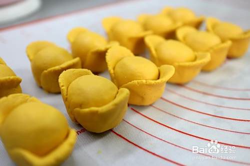 南瓜具有排毒、养颜的功效,因为其含有丰富的维生素E,还能让皮肤光亮无斑,用南瓜泥来揉面做汤圆,虽然量不是很大,但是细水长流的效果不可忽视。金灿灿的元宝汤圆,不但看着漂亮,而且寓意很深。